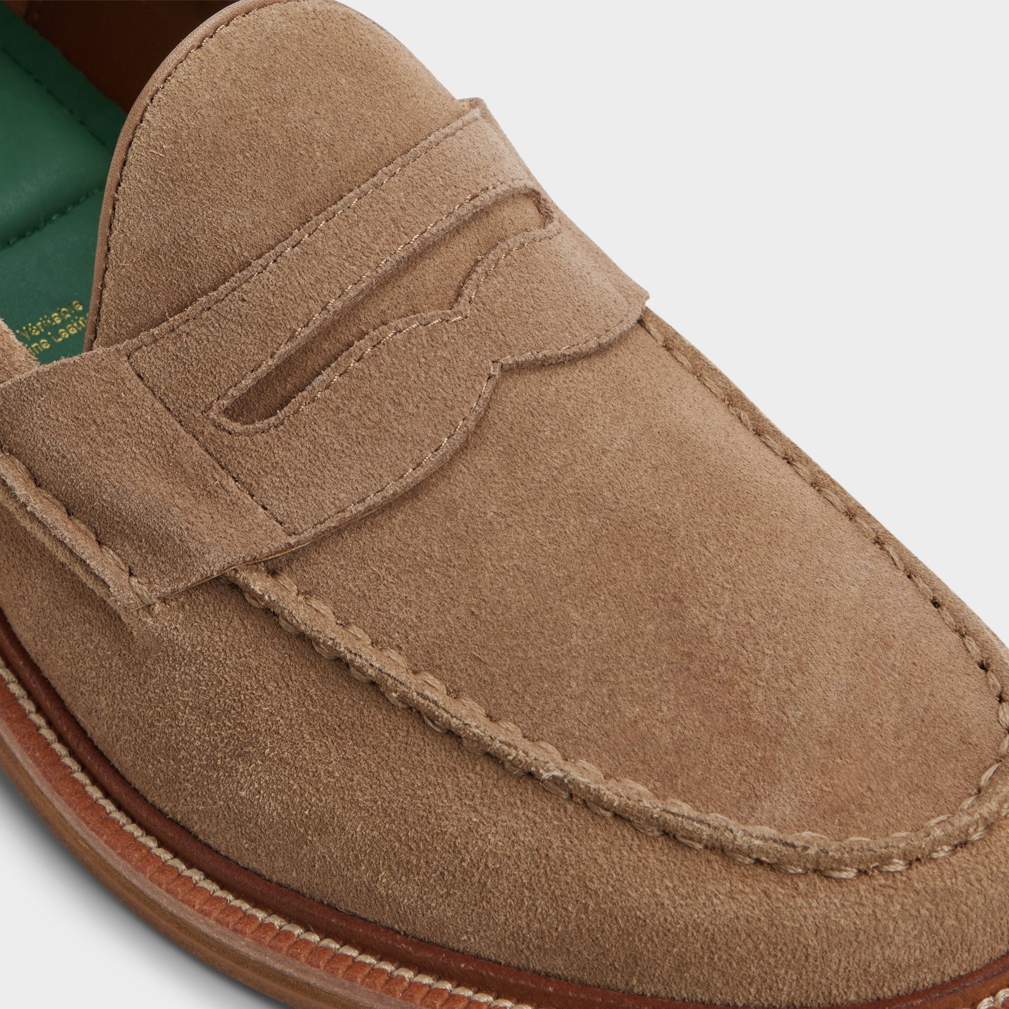 Buttery beige suede meets a smooth leather sole for laid-back luxury in this penny loafer. with moc stitching and a gently stacked heel providing comfort from the get-go. Pair with slim khaki chinos for terrace lunches or dress up a navy suit for client meetings-the subtle tone ensures every step is thoughtful.