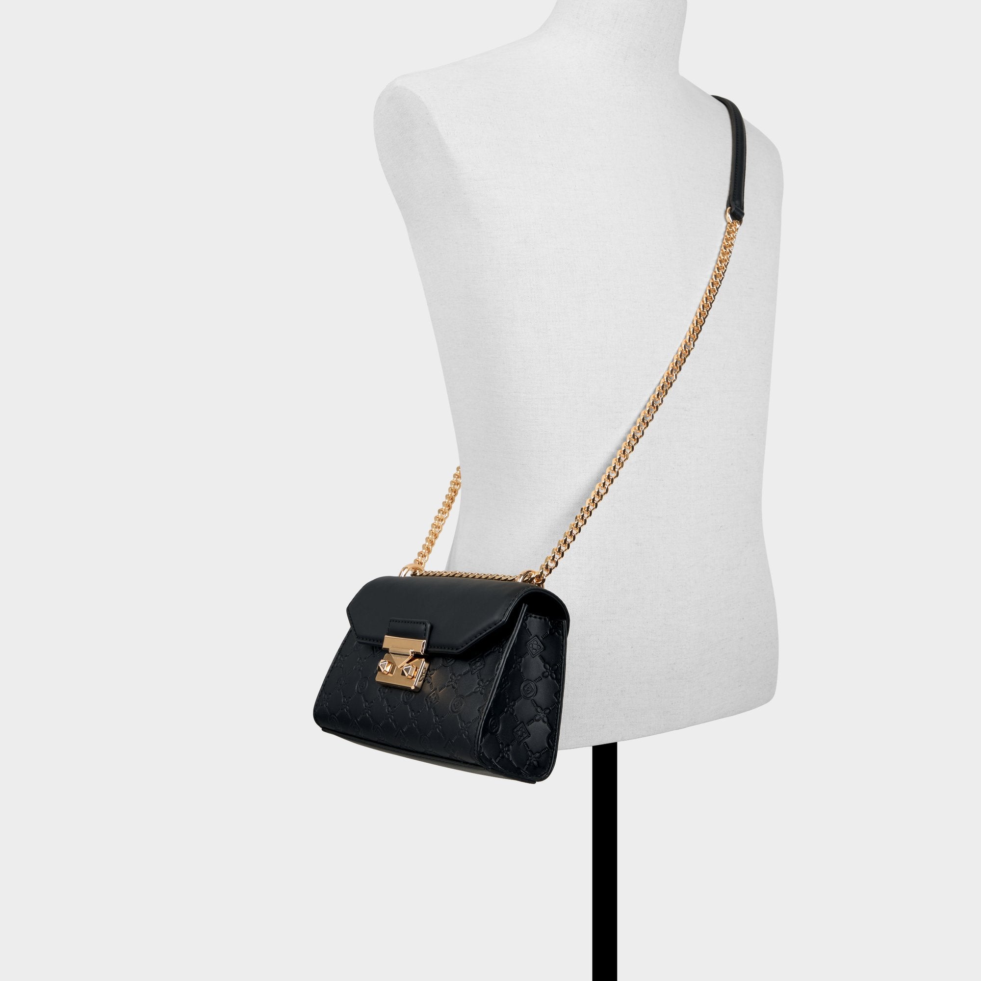Midnight-black quilted synthetic leather frames a geometric flap crowned by a bold gold push-lock. giving this structured crossbody city-polish with a whisper of glam that travels from desk to dinner. Carry it with a satin slip for rooftop dinners. or sling it over blazer-and-jeans for city coffee runs.
