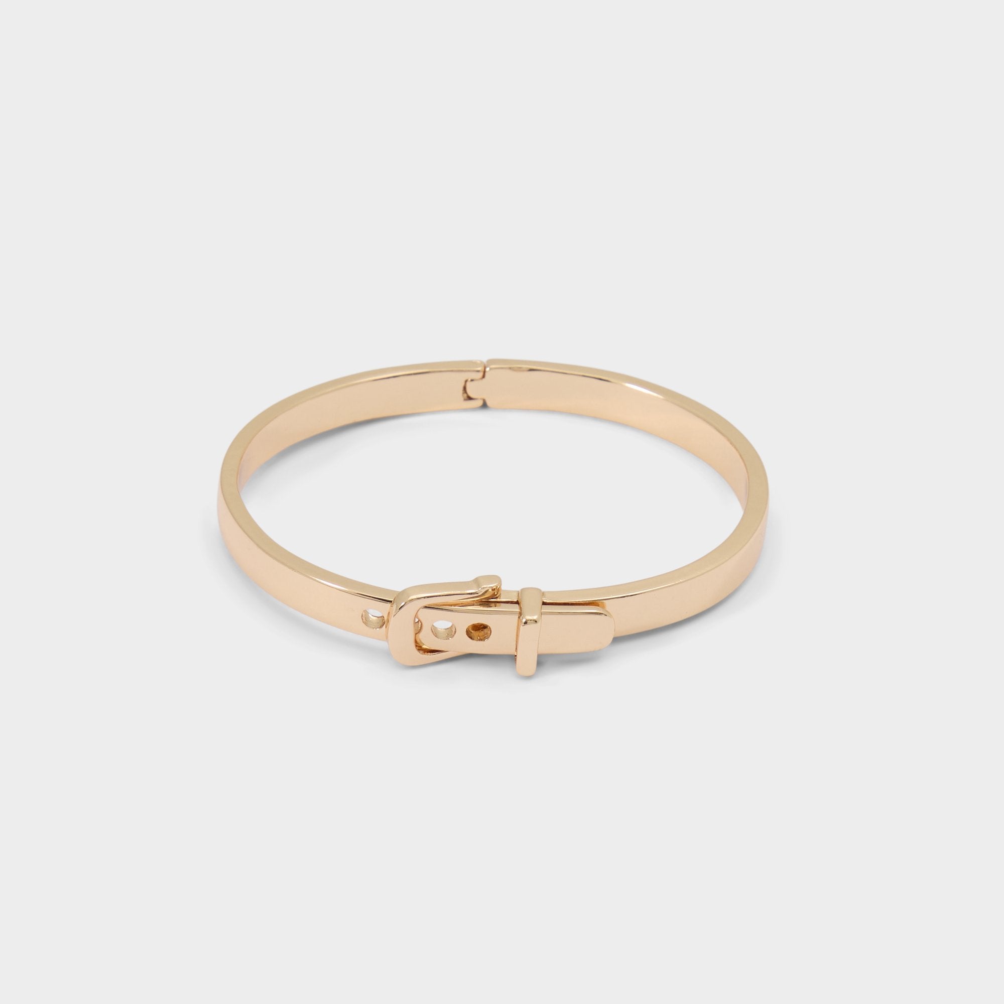 Polished like liquid gold. the slim bangle wraps the wrist in an arc and locks with a belt-buckle clasp adding subtle edge and secure closure. Stack it beside a classic watch for presentation days or let it solo with satin cami at rooftop drinks.