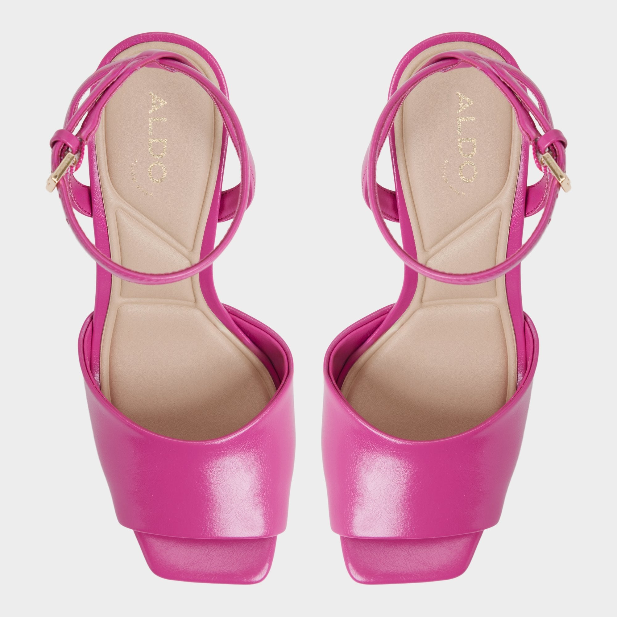 Fuchsia leather frames a leg-lengthening stiletto. sleek and sculpted. with a slender silhouette that catches light. balanced by a cushioned footbed that lets confidence shine with every step you take. Pair with wide-leg suiting for skyline happy hours. or ground a satin mini when vows turn to midnight moves.
