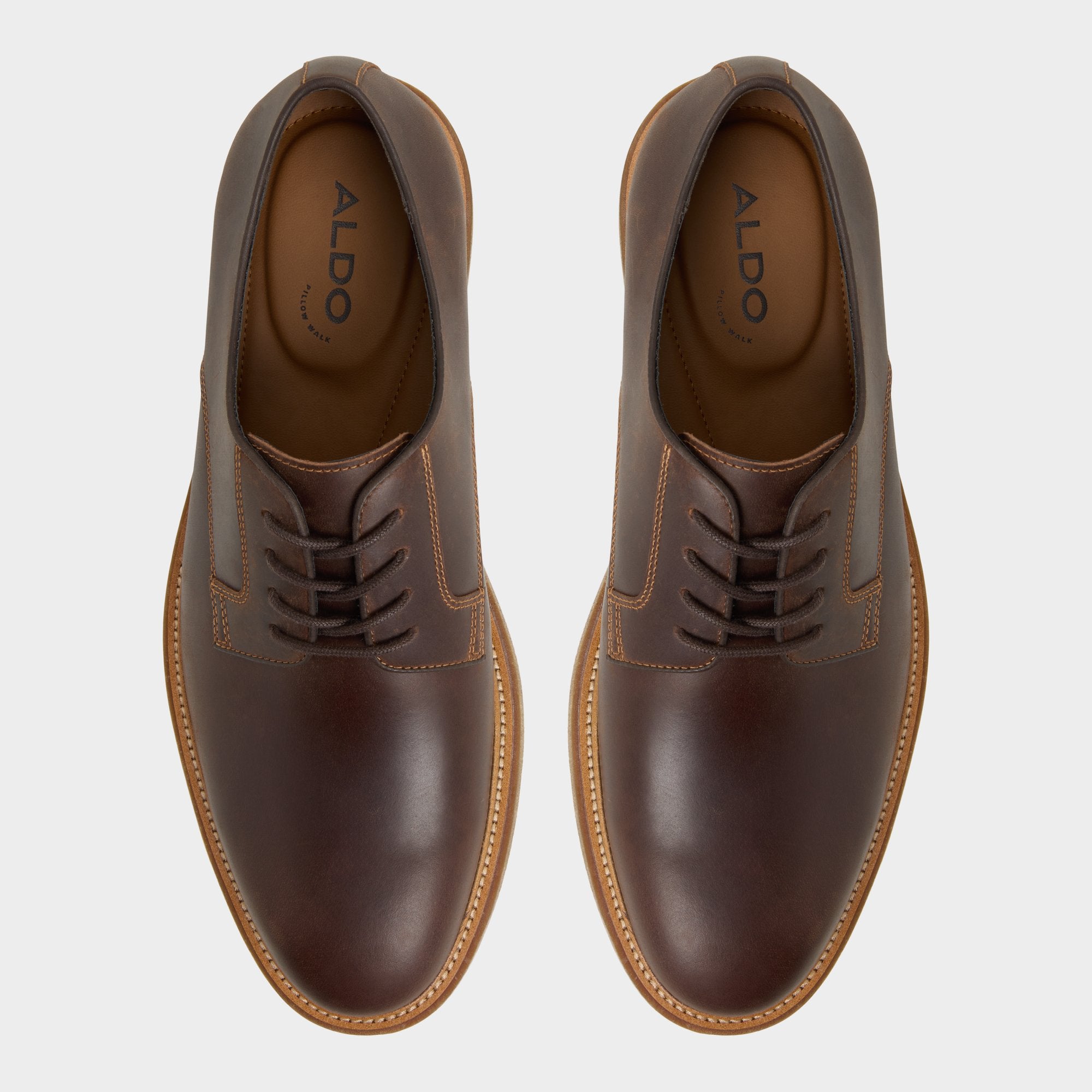 Cupsole cushioning under smooth brown leather blurs the line between classic derby and off-duty sneaker. while contrast welt stitching nods to craftsmanship and a lightweight rubber base eases commutes. Anchor navy chinos for client coffees or roll with cuffed denim at backyard hangs-the relaxed sole never feels stiff.