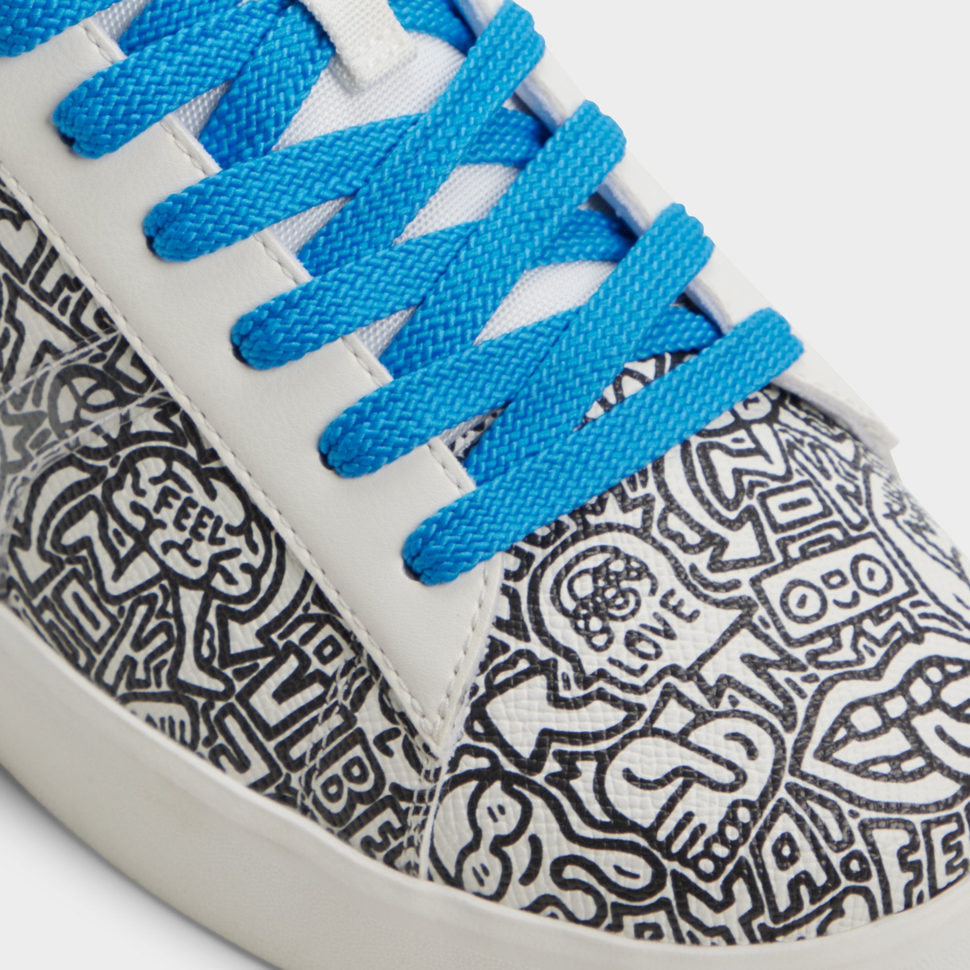 Synthetic uppers with graffiti-inspired flair and electric-blue laces give this low-top city energy. ready to turn sidewalks into runways. while a cushioned cup sole keeps every stride light and confident. Team with cuffed chinos for gallery visits. or roll with joggers for coffee runs—the bold print sparks conversations.
