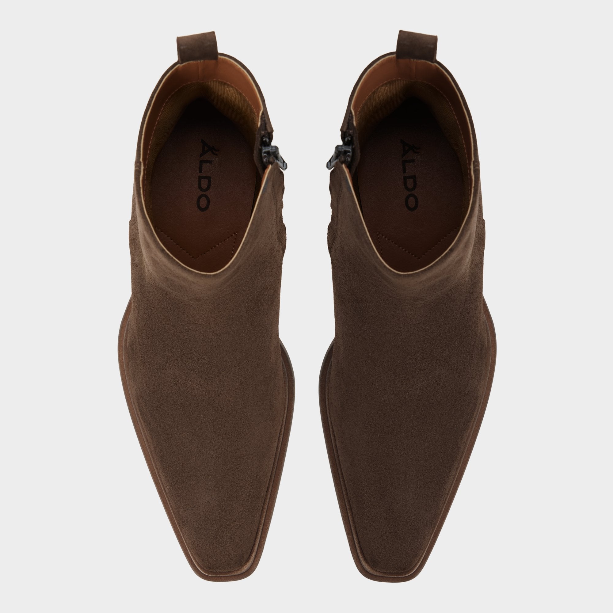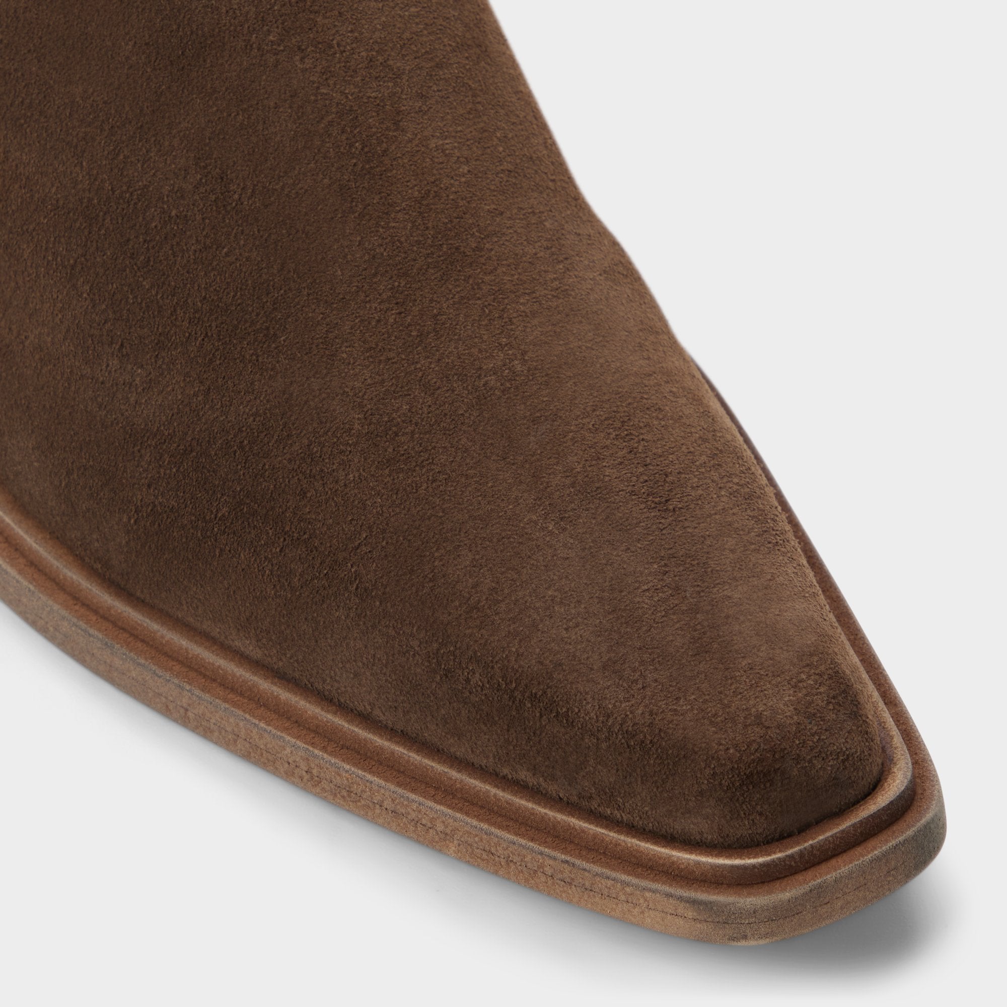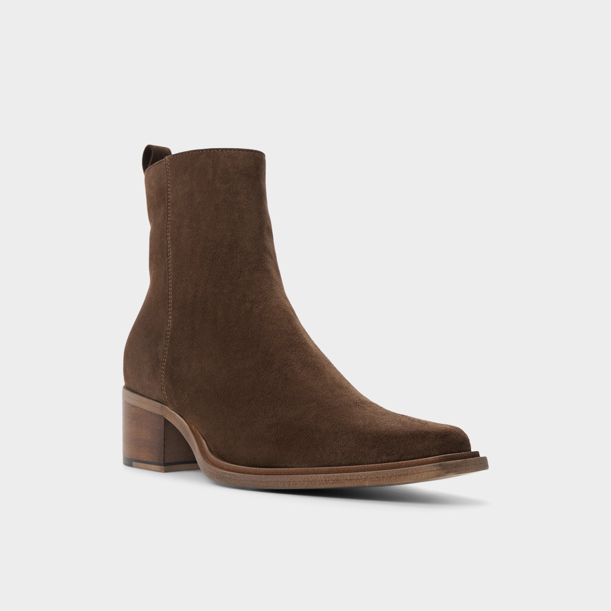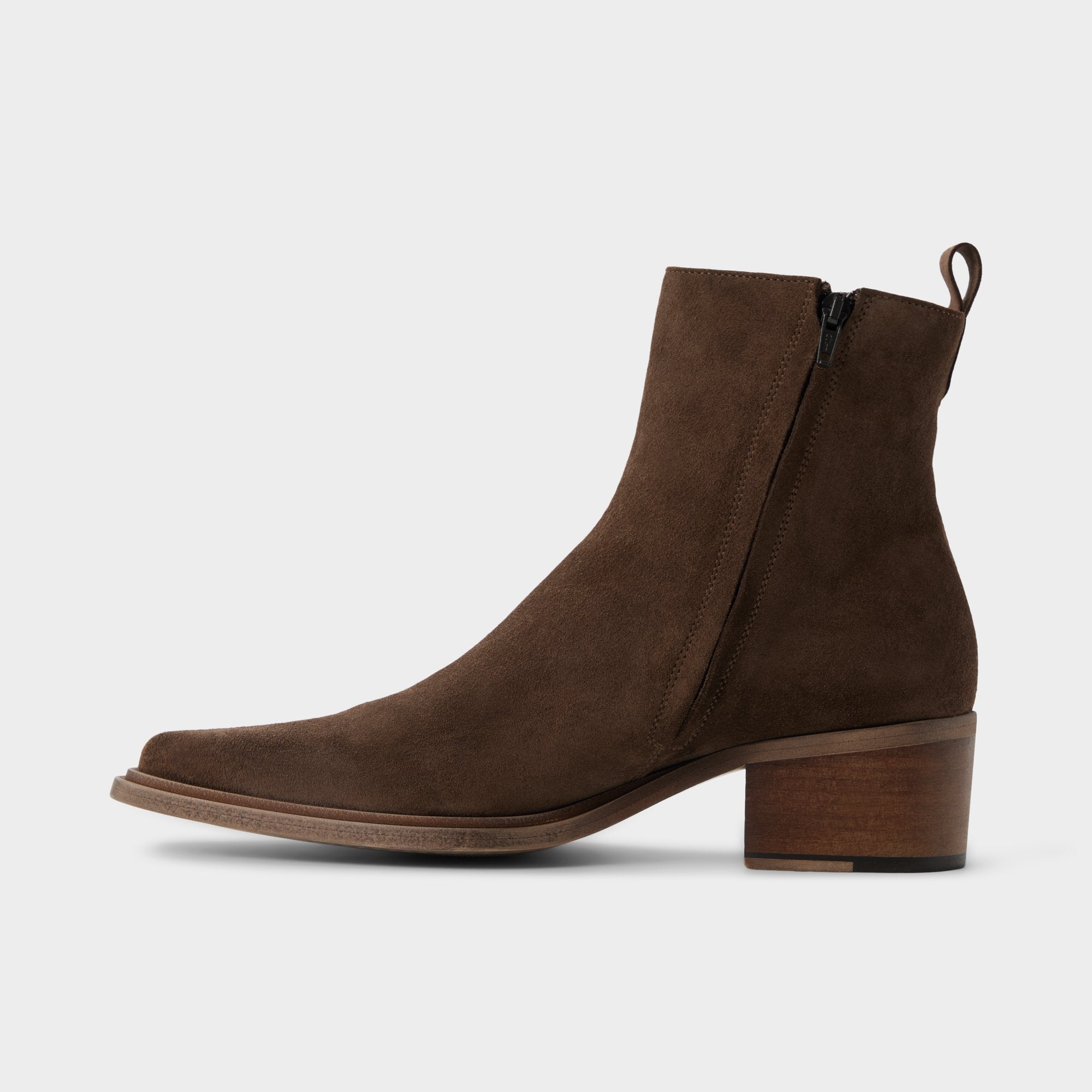 Earthy suede and a sharp point toe define this pull-on ankle boot. exuding rock-tour swagger as a stacked block heel lifts you just enough and a leather outsole smooths every step. Anchor skinny black denim for gig photos. or team tailored wool trousers for winter weddings. letting the suede finish catch the light.